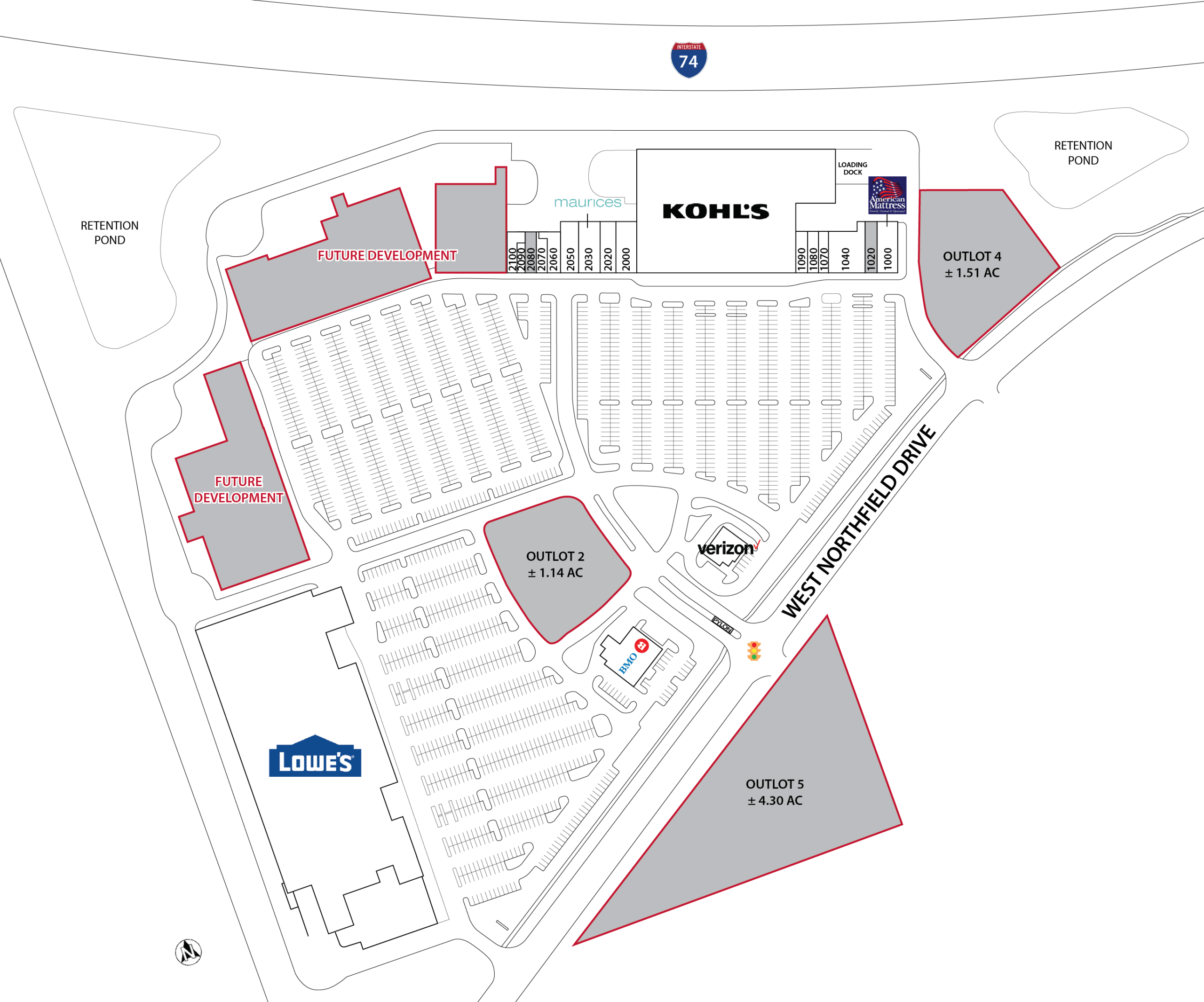 - multiple outlots from 1.14 to 4.30 acres and in-line future development available up to 165,000 sf