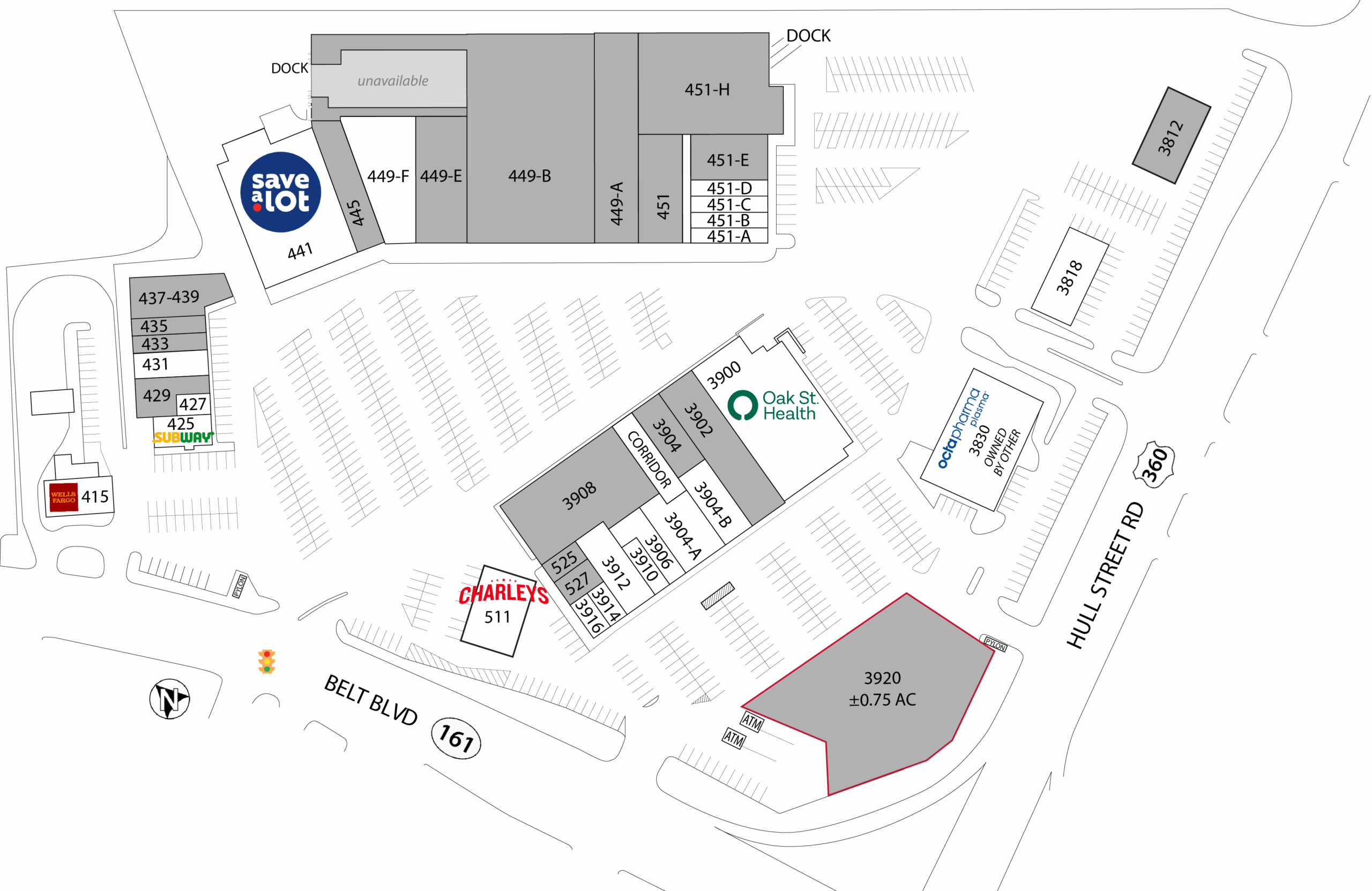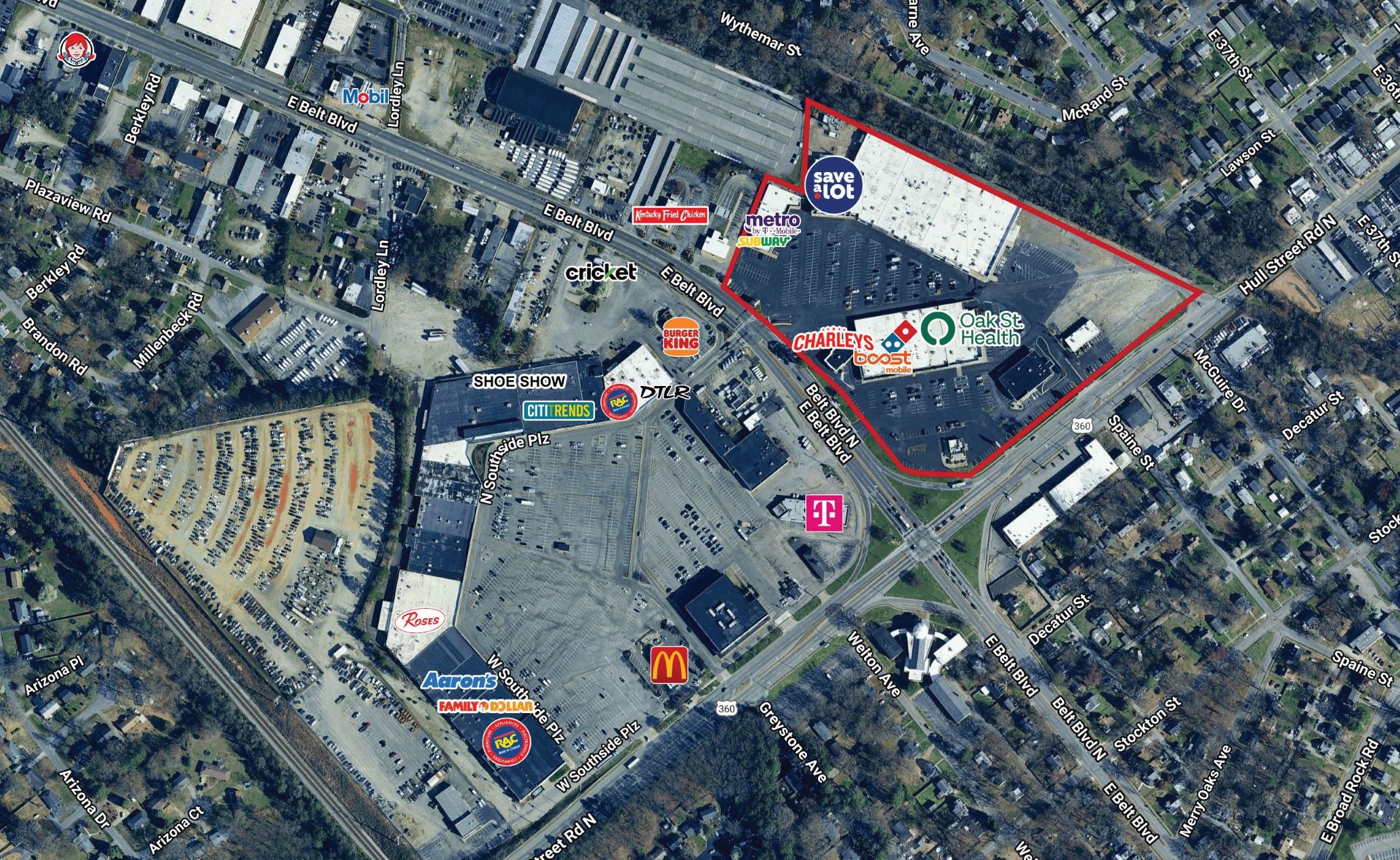 • daily traffic counts: 28,000 on Belt Blvd. and 32,000 on Hull Street Road / U.S. 360
