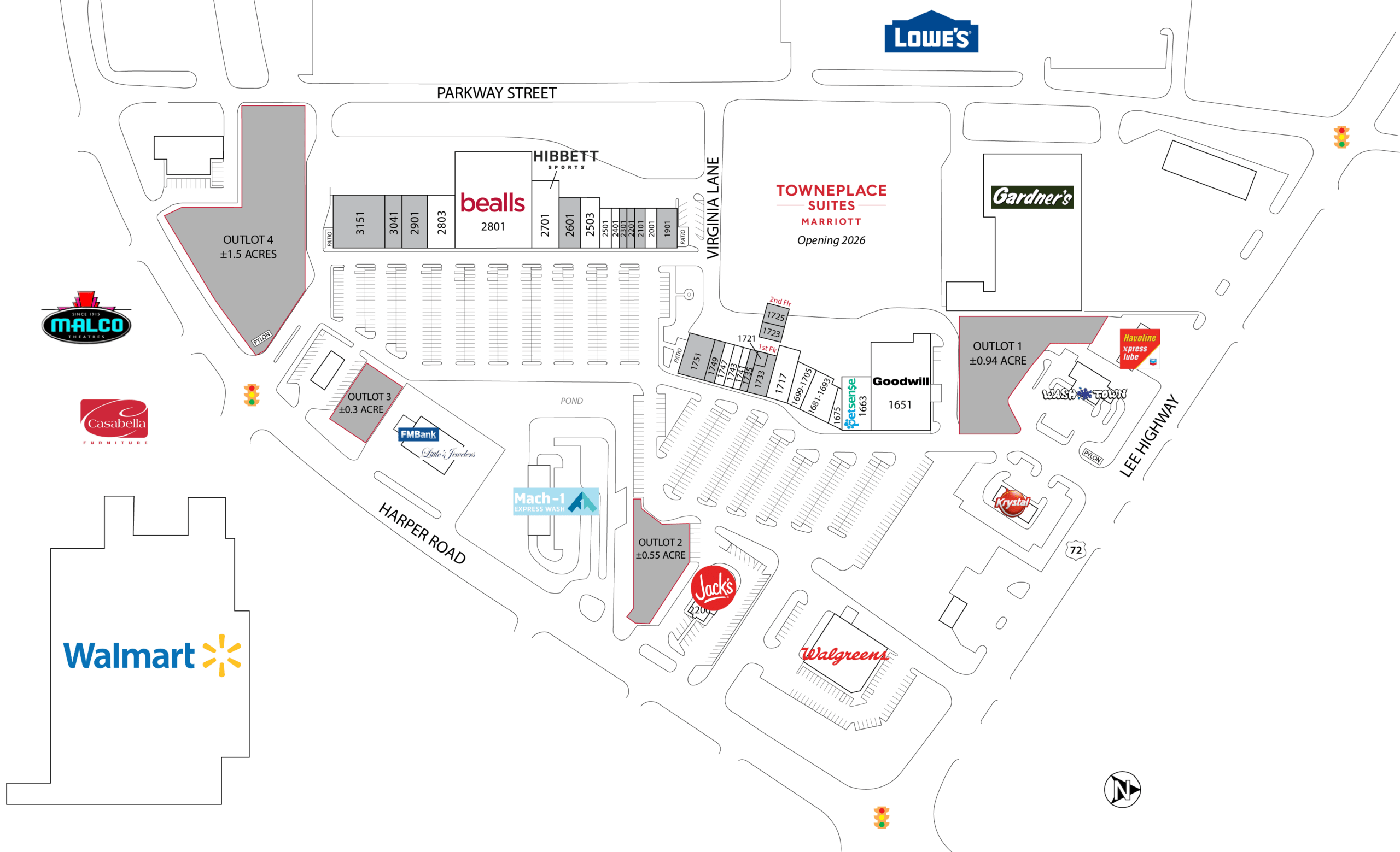 • outparcels available from 0.3 to 1.5 acres