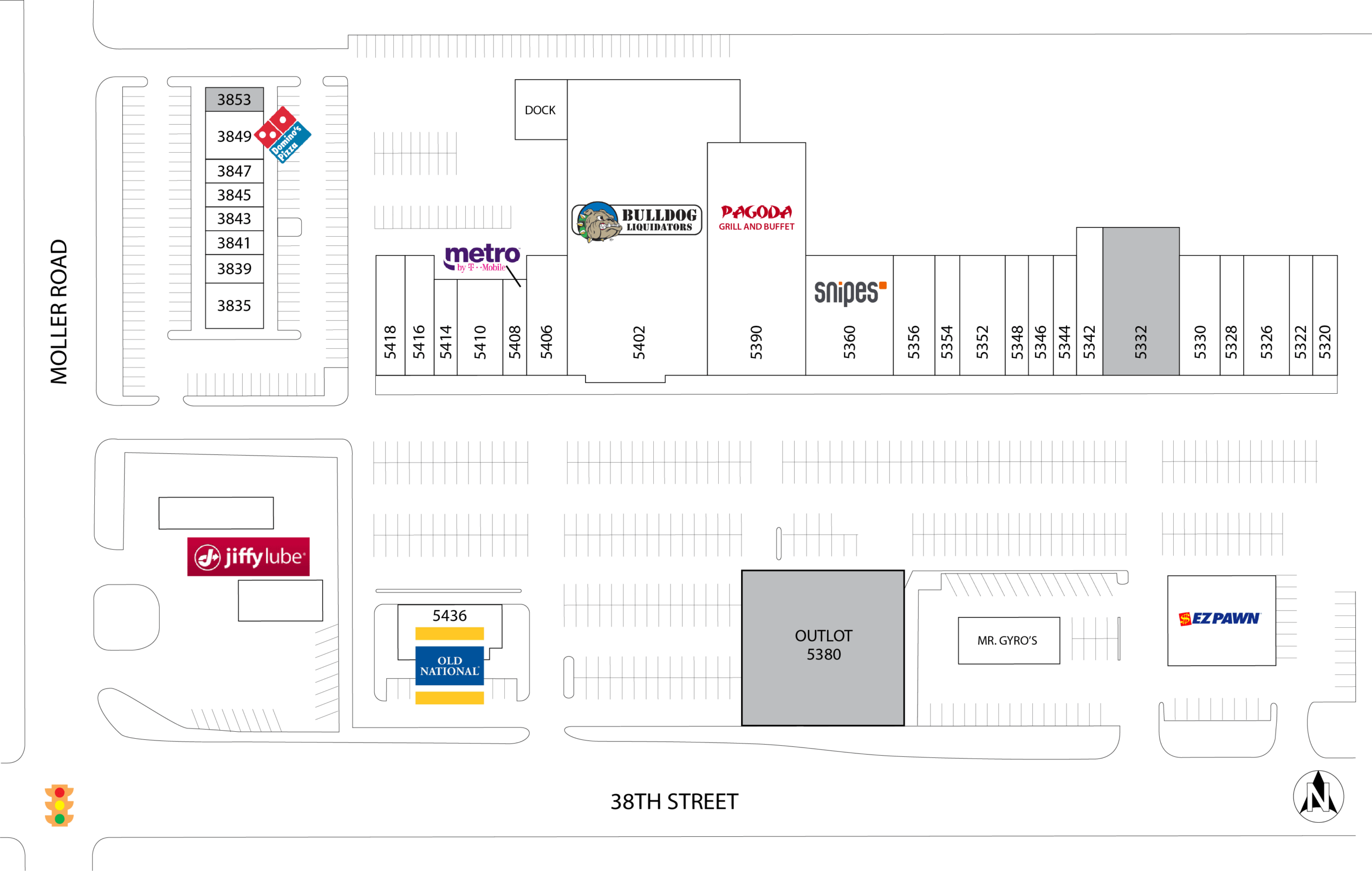 | 5436 | Old National Bank | - | 3,546 | 52 x 82 IRR | 3,546 SF Dims. 52 x 82 IRR |