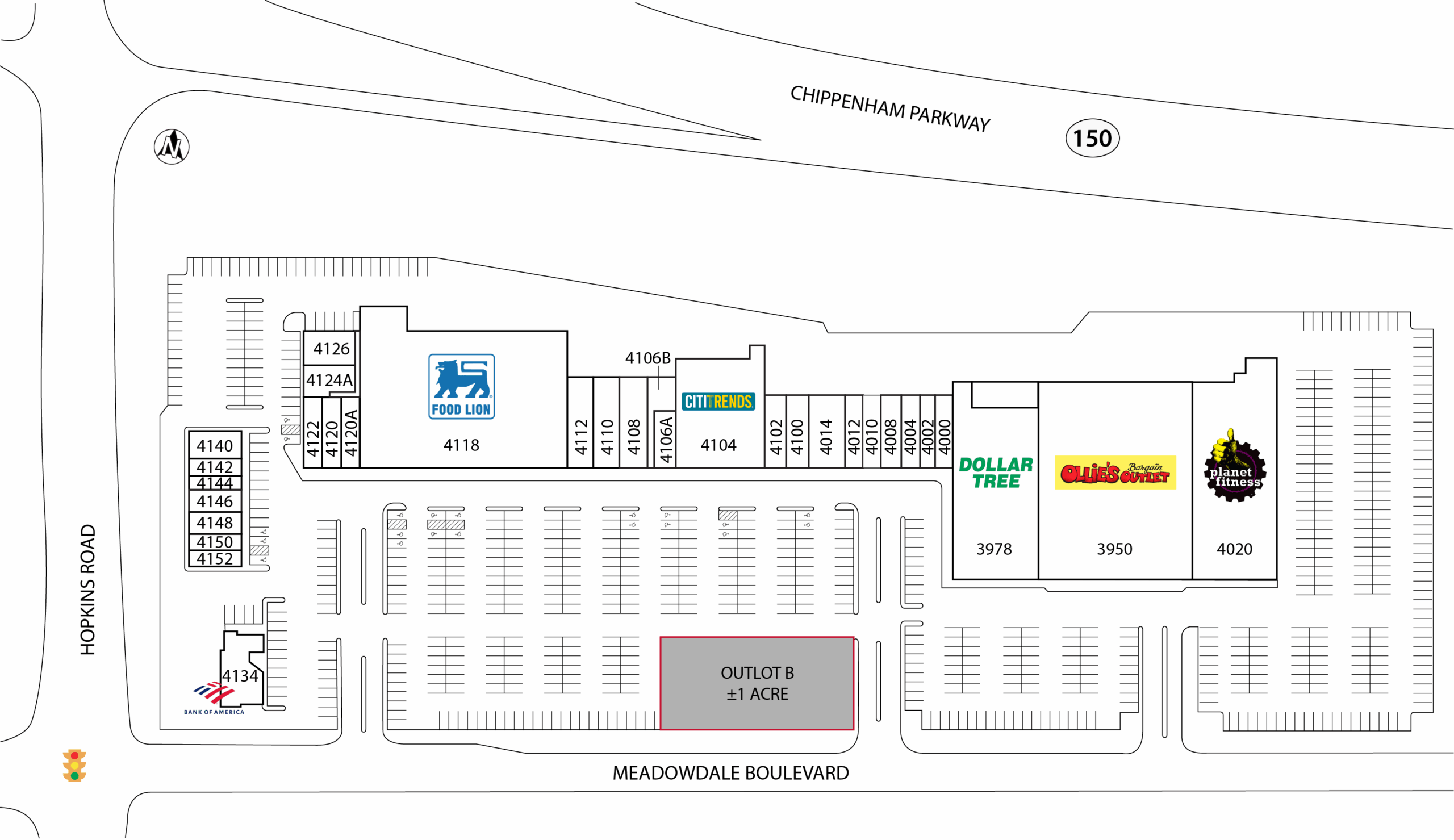 | 4134 | Bank of America | - | 2,933 | 80 x 40 IRR | 2,933 SF Dims. 80 x 40 IRR |