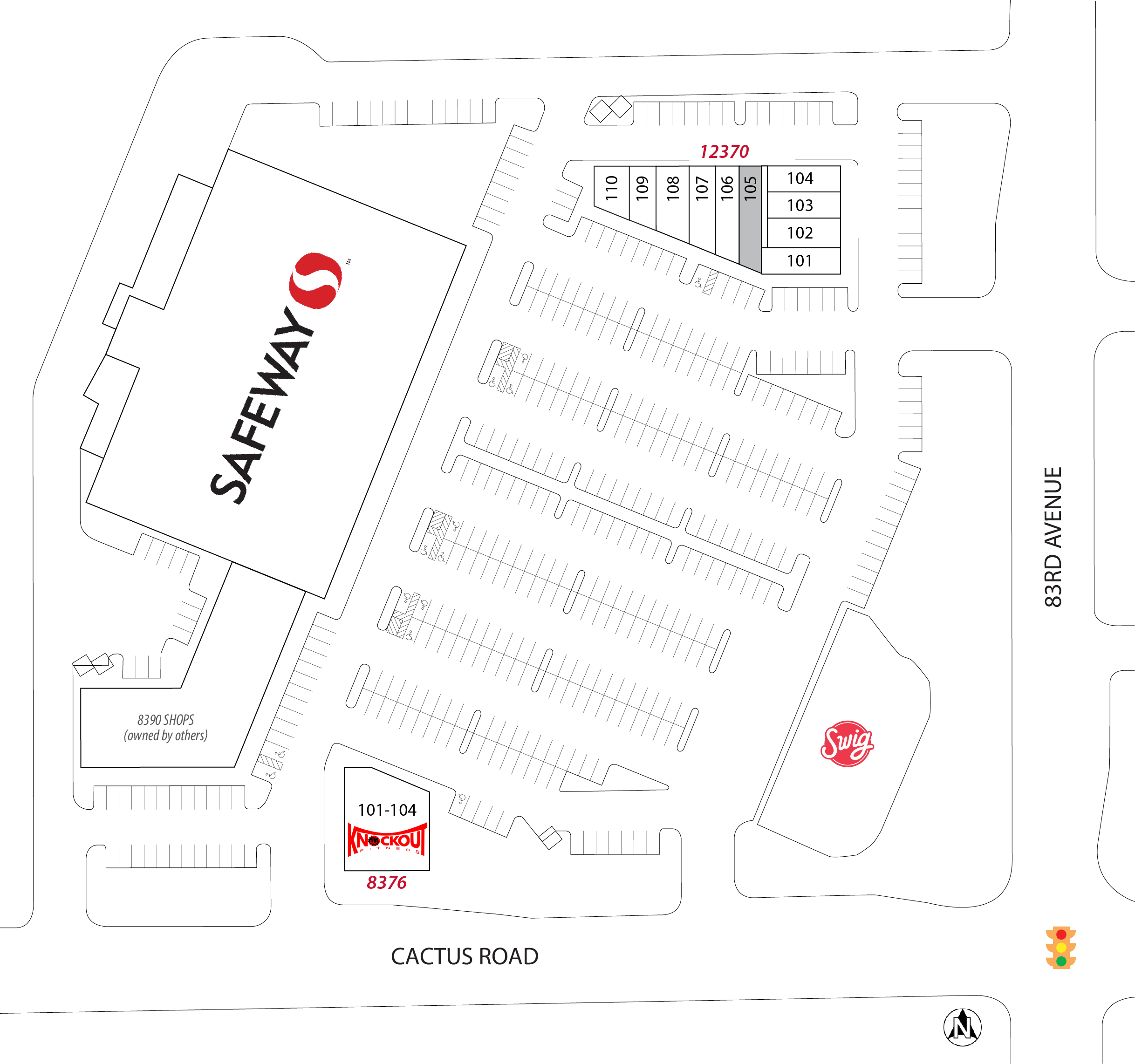 | 8376-101 | Knockout Fitness | - | 4,590 | 64 x 70 IRR | 4,590 SF Dims. 64 x 70 IRR |