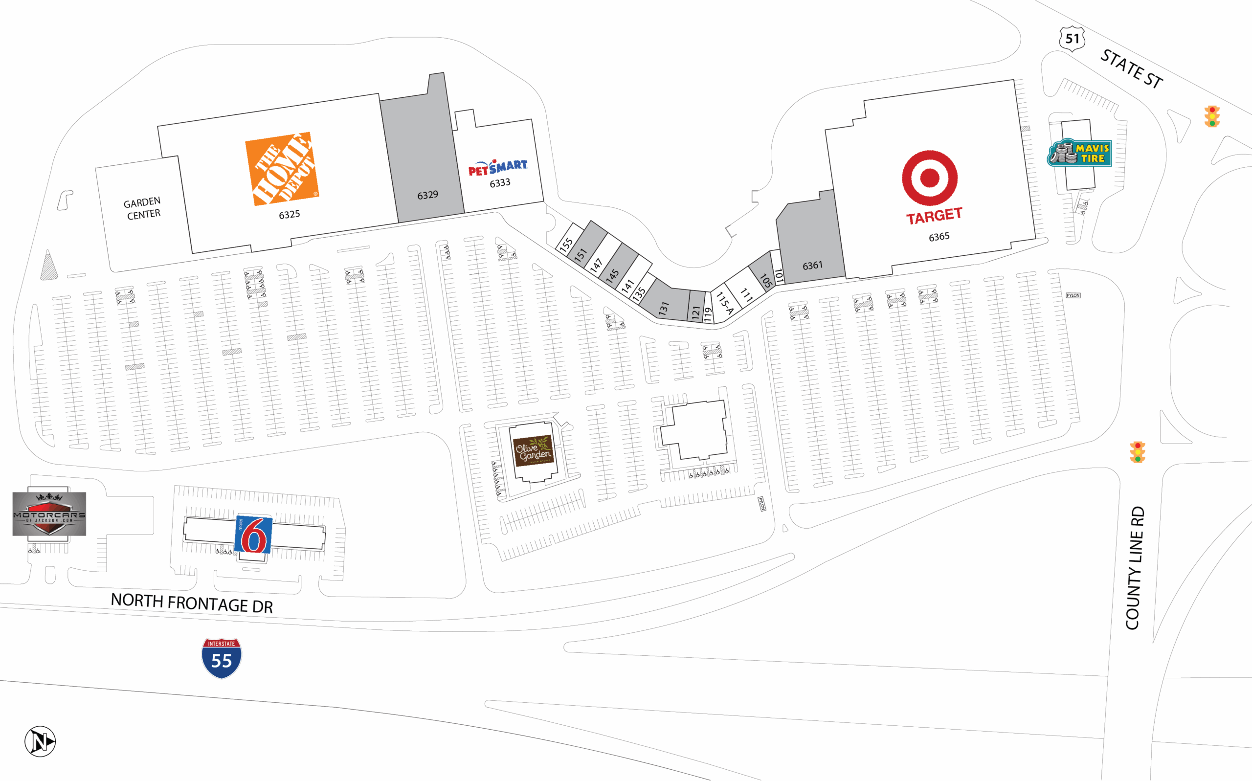 • daily traffic counts: 98,000 on I-55; 32,000 on County Line Road; and 19,000 on State Street/U.S. 51
